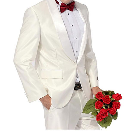 白色西服比較適合年輕且膚色身材較好的男生,這類準新郎與新娘的白婚紗搭配一起,也是比較有詩情畫意的感覺。新郎如果是選擇白色西服,建議最好是佩戴黑絲或者紅色的領結,這樣看起來更有協調感。