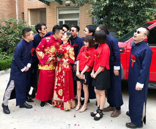如何新娘和新郎的婚禮是選擇以中式婚禮為主題的,那么伴郎選擇具有特色的袍服或大馬褂這類型的服裝都是可以的。在婚禮上新郎和伴郎都同時穿上具有中式特色的禮服,這也是讓婚禮宴席上給大家更多的驚艷。相信也會有不少的新人們會選擇這種具有特色的中式婚禮。