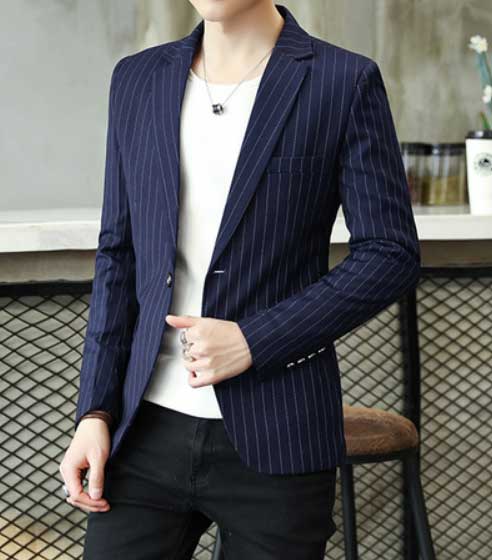 1、條紋西裝在穿搭時可以選擇單品外套+休閑牛仔黑色褲子,上身內搭T恤,鞋子可以搭配卡其色的休息板鞋,這種穿搭比較適合年輕男士,不但顯得休閑,更給人一種時尚的氣息,對于酷愛時尚的你,不妨可以試試這樣的穿搭。