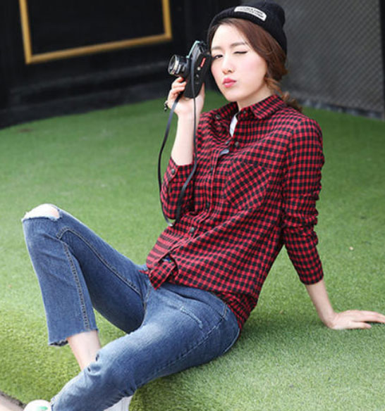 女生格子襯衫搭配圖片
