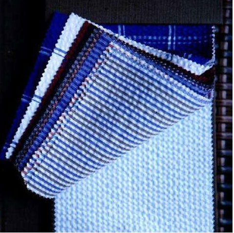 泡泡紗。也是夏季非常適合的西服面料,泡泡紗是輕薄平紋細布加工而成的,布面呈現均勻密布凸凹不平的小泡泡。泡泡紗透氣、涼爽不貼身,而洗后不需熨燙,極易護理。炎熱夏天選擇泡泡紗面料定制西服也是不錯的選擇。