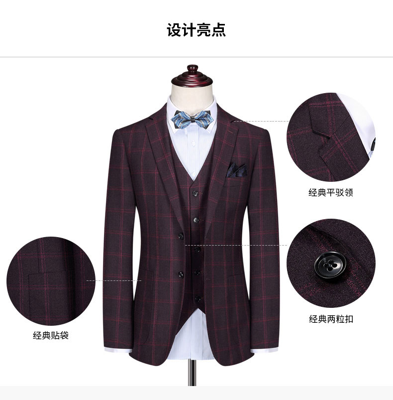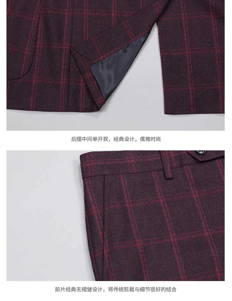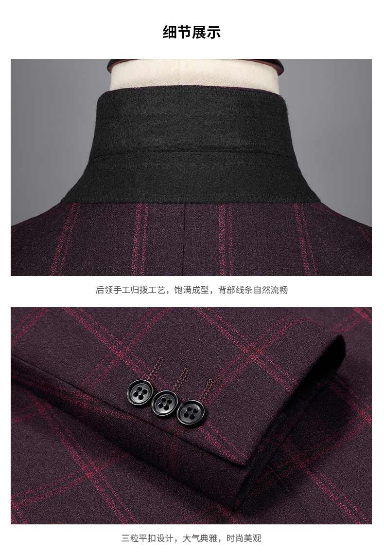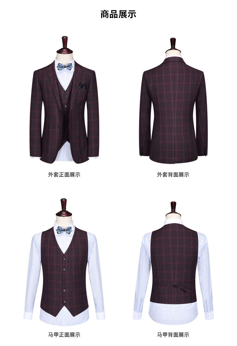 西服的設計亮點上衣跟馬甲的正反面圖片褲子的正反正圖片西裝外套的細節圖西裝外套的細節圖西裝外套的細節圖