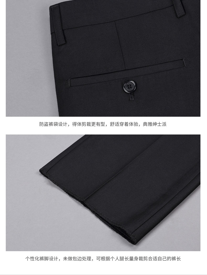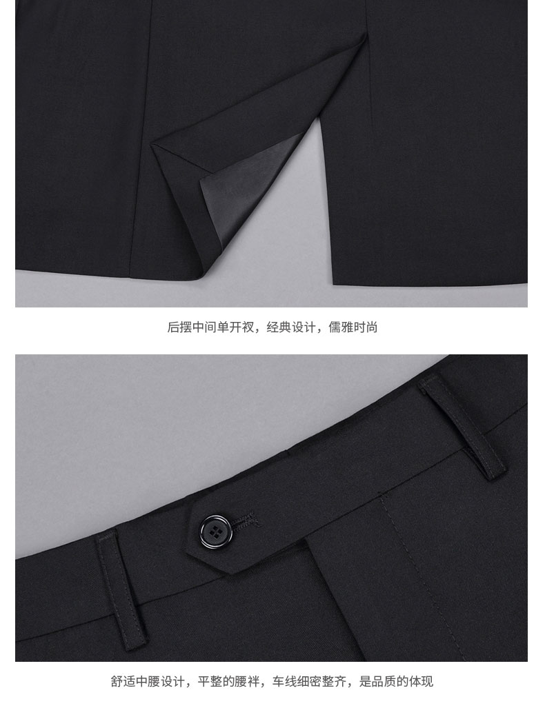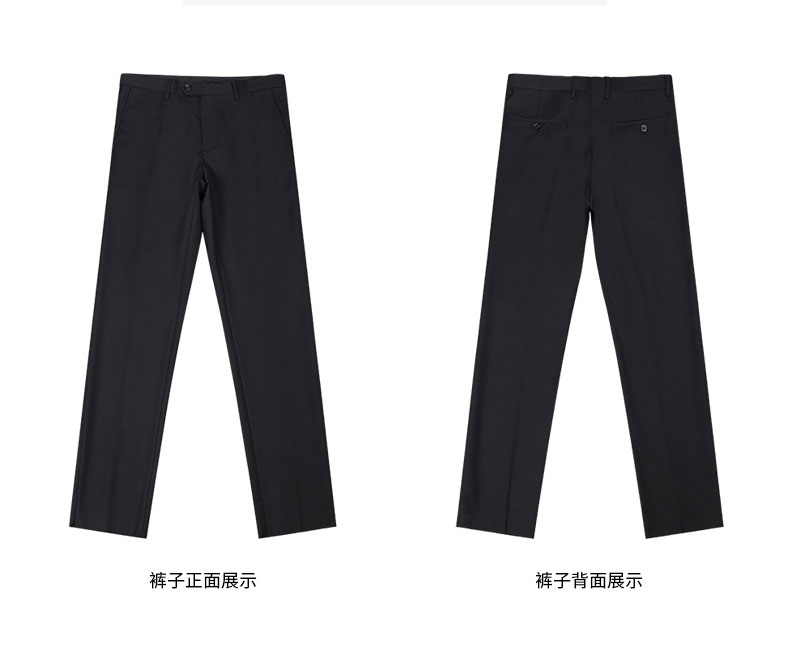 西服上衣工藝說明圖西服上衣及馬甲正反面款式圖西褲正反面款式圖西服駁頭細節圖西服內里細節圖西服下擺及西褲腰頭細節圖西褲款式細節圖西褲后袋及褲腳細節圖