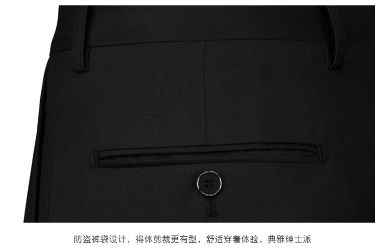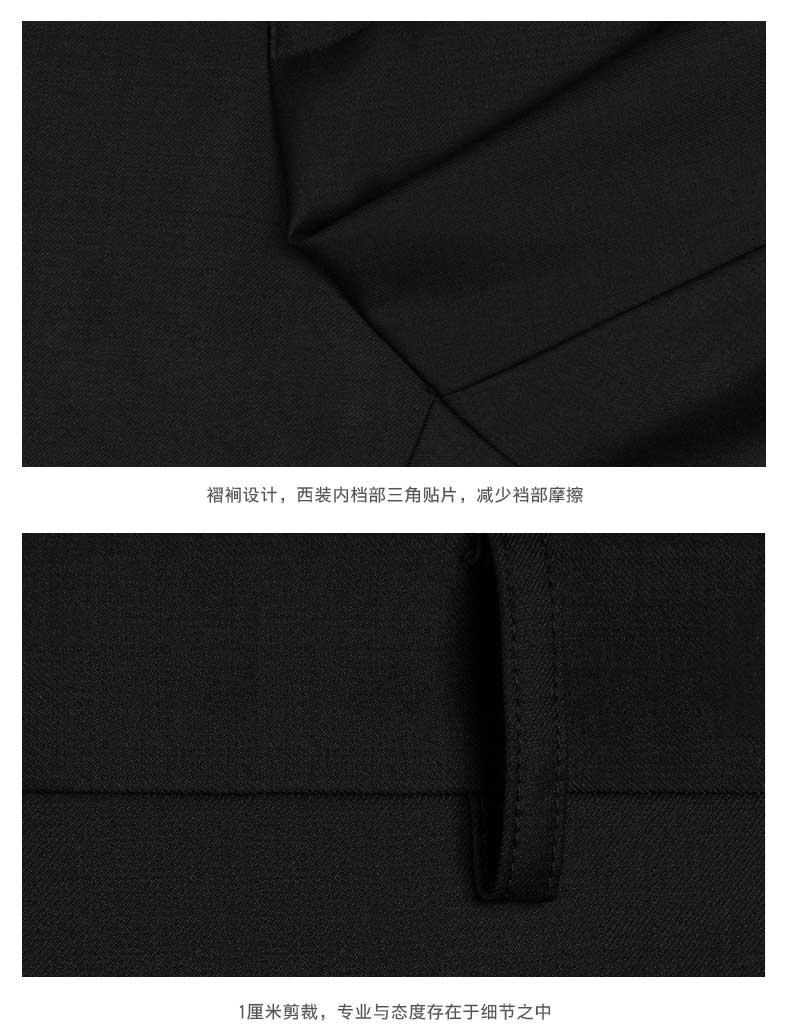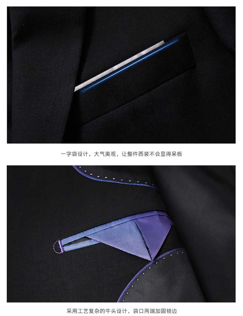 西服駁頭細節(jié)圖西服內袋細節(jié)圖西服裝飾細節(jié)西褲工藝細節(jié)圖西褲后袋細節(jié)圖
