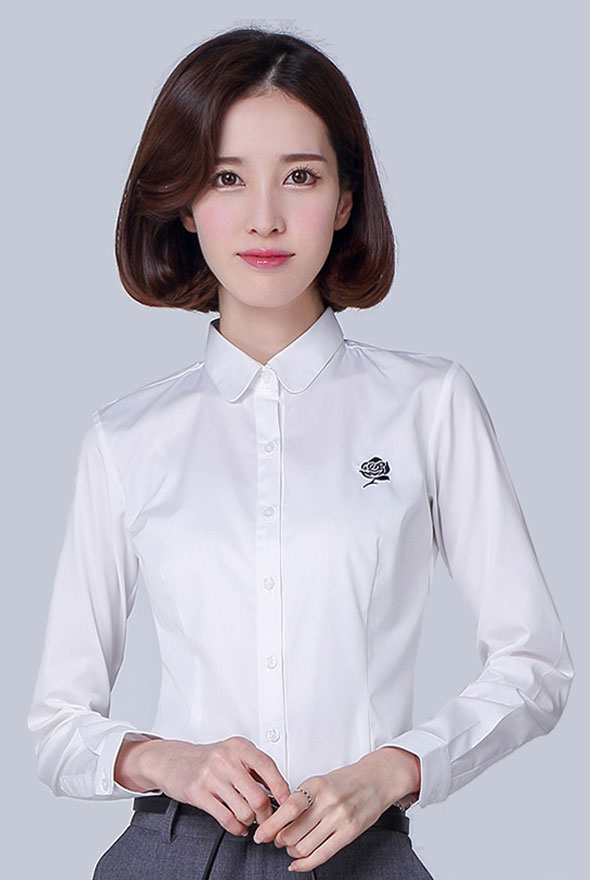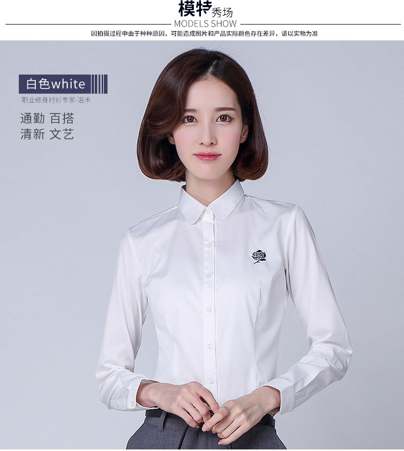 產品名稱:女士白色修身長袖襯衫定制