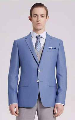 技巧三、冷色調(diào):一般情況下包括綠、青、藍等(如圖三),這種色調(diào)的定制西服比較適合乳白色皮膚或帶藍色調(diào)的褐色皮膚的男士,這種類型的男士在穿冷色調(diào)定制西服的時候會顯得特別的有氣質(zhì)。發(fā)色搭配上可以是輕柔的灰黑色、柔和的棕色或深棕色。