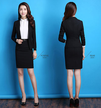 第一:在定制之前,要明確自己想要的職業裝款式,女性職業裝的款式眾多,一般來說,常見的有上衣單排扣搭配西褲或西裙的套裝,而套裝又可分為配套的和不配套的,但是一般來說,上下著裝要選擇同色的布料,當然這個也要視職業的不同進行選擇。