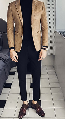一身棕色的西裝搭配,自然不會出錯,并且能襯托出成熟男人的瀟灑魅力,但卻不太適合年輕的小伙子。對于年輕人而言,用棕色西裝搭配其他顏色的褲子和鞋子,可以輕松營造雅痞的休閑韻味。可以嘗試用深藍色的褲子和黑色皮鞋搭配棕色外套,雖然黑色和深藍色比較接近,但黑色的褲子搭配棕色外套,會讓人產生壓抑的感覺,是不建議的。