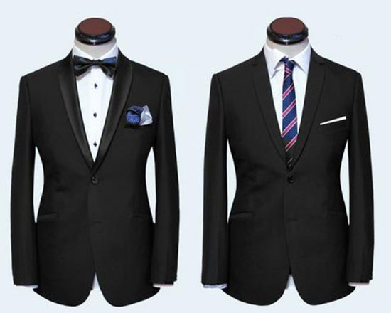 紅與黑是永恒的經(jīng)典,黑色的禮服西裝最適合搭配新娘的婚紗一起穿著。